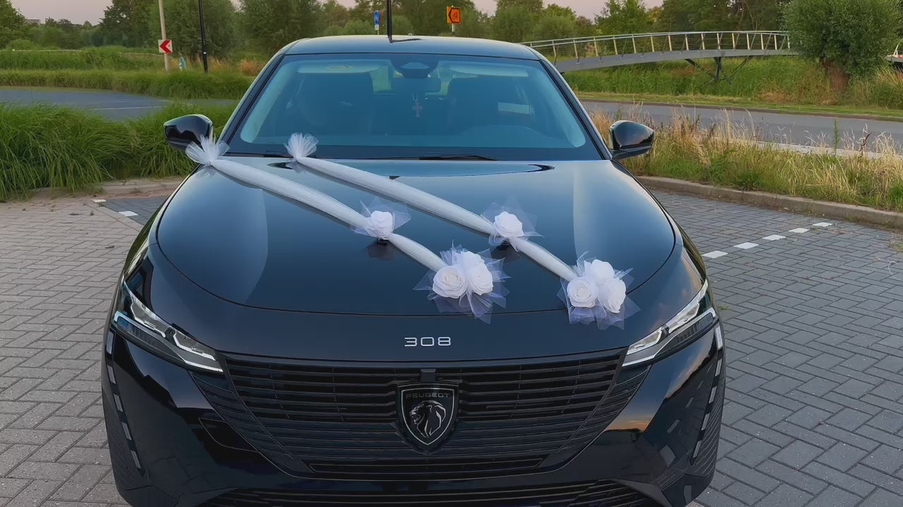 Maak van je trouwauto een onvergetelijke blikvanger met onze prachtige autodecoratie. Met de mooiste bloemstukken en (rozen) kransen tover je jouw auto om tot een romantisch plaatje dat perfect past bij de sfeer van jullie bruiloft. Onze decoraties zijn zorgvuldig samengesteld en met oog voor detail afgewerkt, zodat je er verzekerd van bent dat jouw auto er op zijn best uitziet op jullie speciale dag. Onze autodecoratie is eenvoudig te bevestigen en wordt geleverd als een complete set, waardoor je snel en gemakkelijk een prachtige decoratie kunt creëren. Met onze autodecoratie ben je verzekerd van een perfecte start van jullie huwelijk!