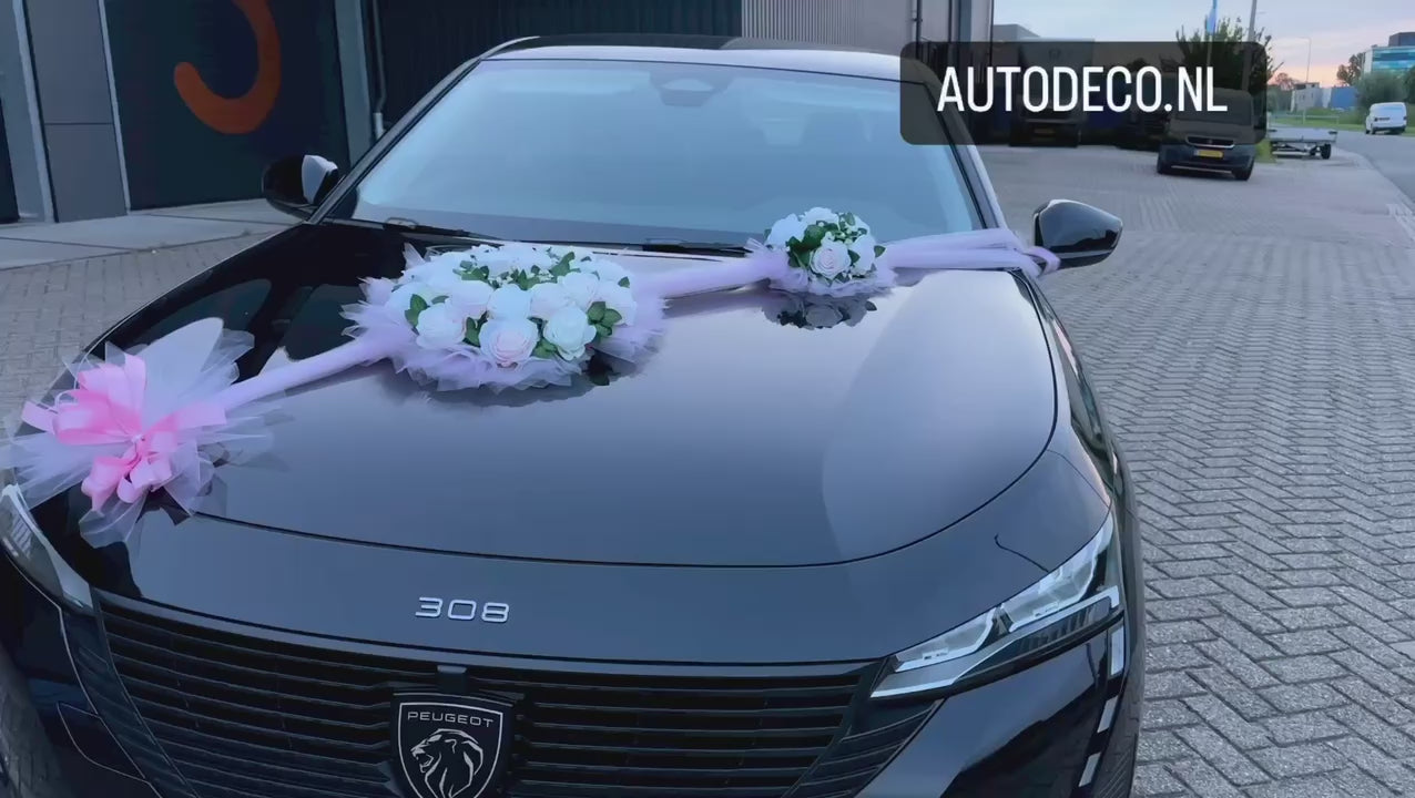 Maak van je trouwauto een onvergetelijke blikvanger met onze prachtige autodecoratie. Met de mooiste bloemstukken en (rozen) kransen tover je jouw auto om tot een romantisch plaatje dat perfect past bij de sfeer van jullie bruiloft. Onze decoraties zijn zorgvuldig samengesteld en met oog voor detail afgewerkt, zodat je er verzekerd van bent dat jouw auto er op zijn best uitziet op jullie speciale dag. Onze autodecoratie is eenvoudig te bevestigen en wordt geleverd als een complete set, waardoor je snel en gemakkelijk een prachtige decoratie kunt creëren. Met onze autodecoratie ben je verzekerd van een perfecte start van jullie huwelijk!